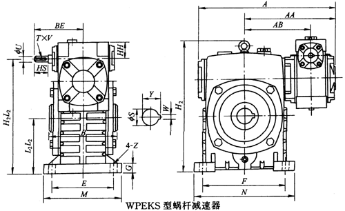 WPEKS型蜗杆减速器主要尺寸 /mm